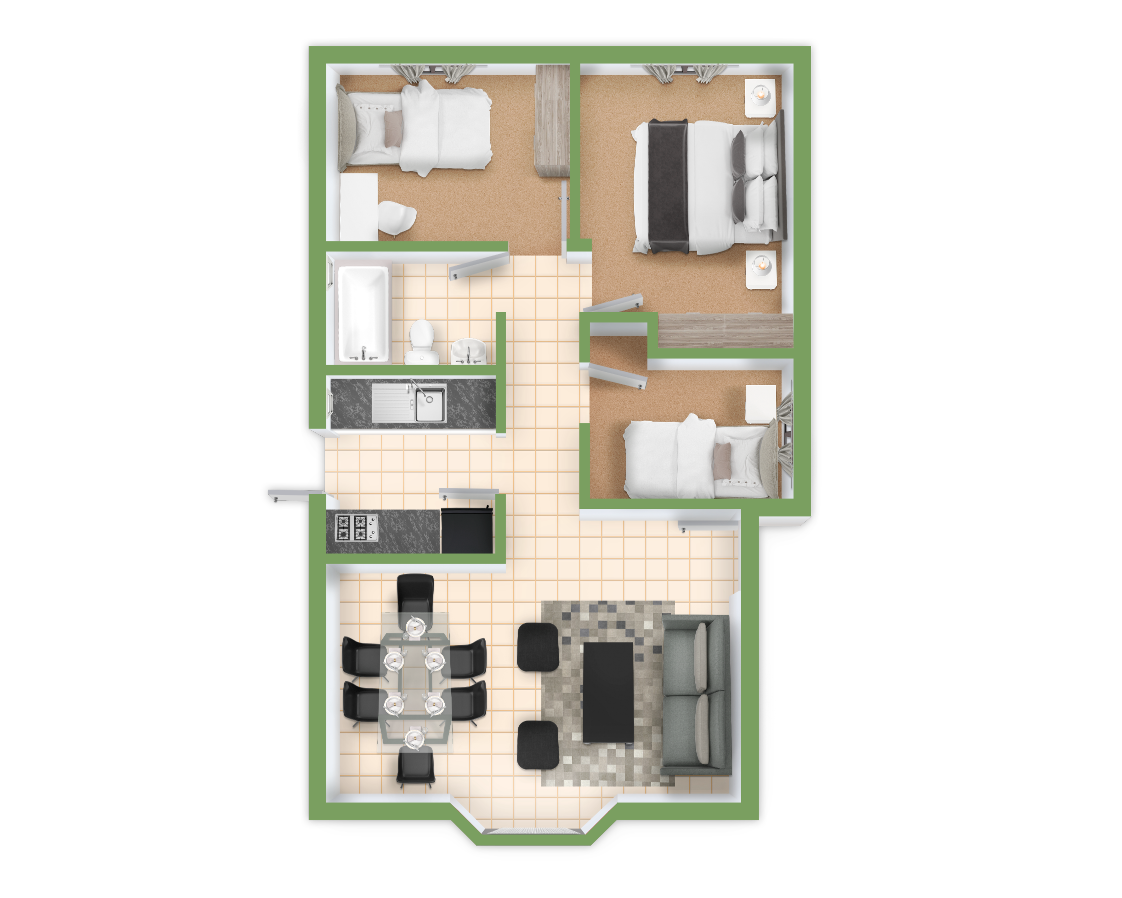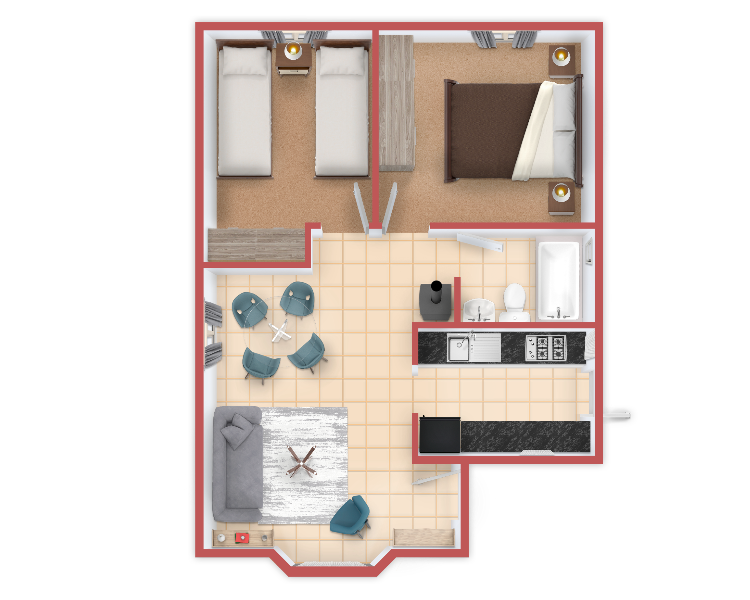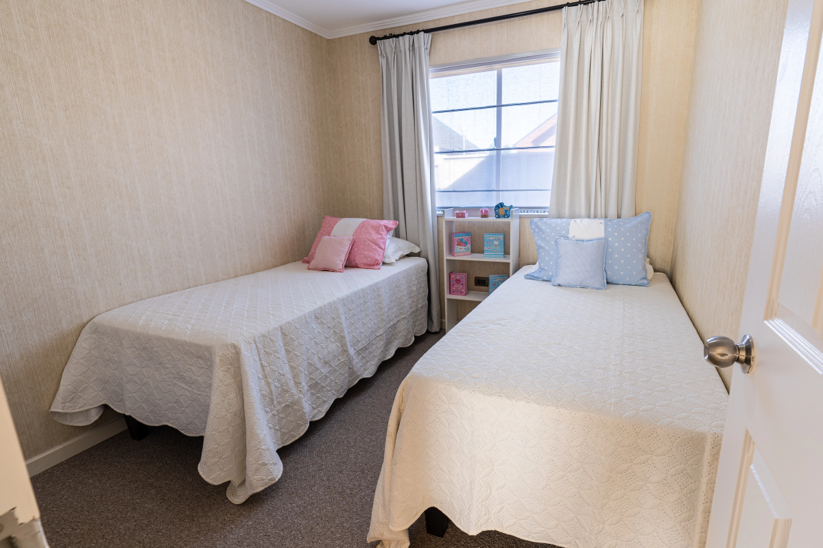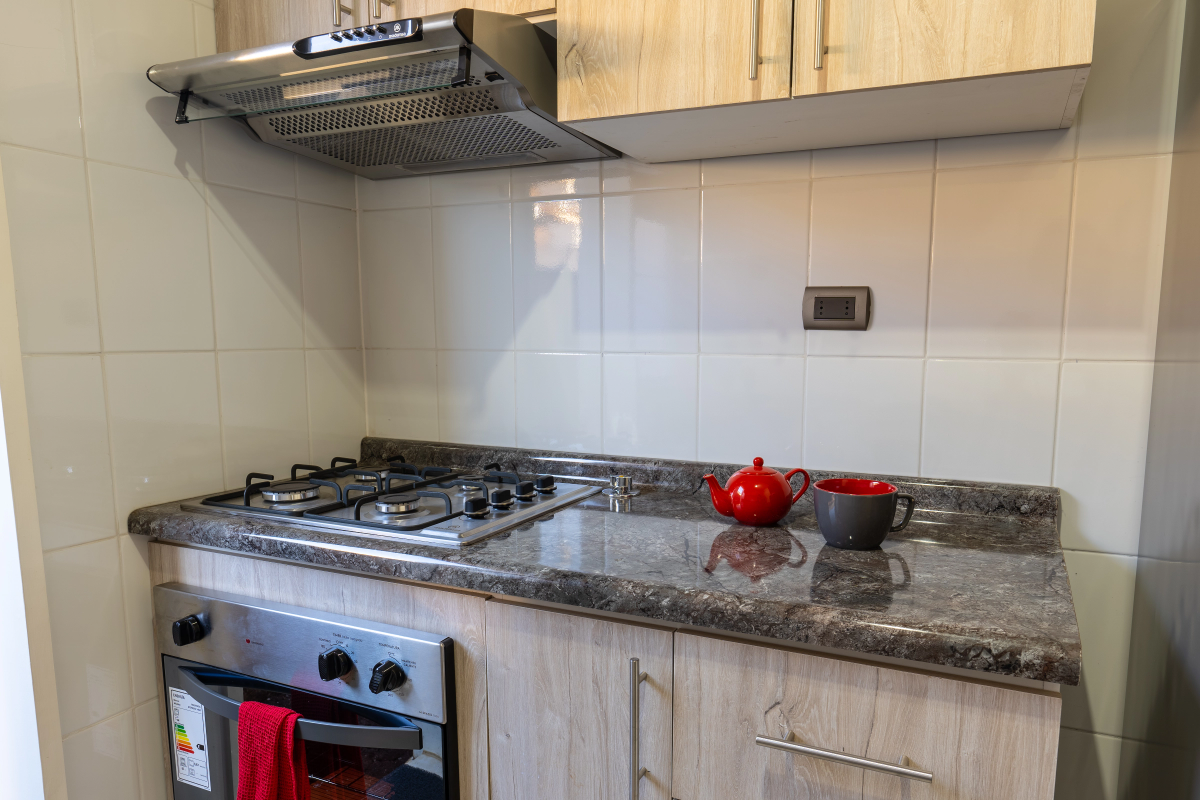 Cocina, living comedor, muros de albañería reforzada, alfombra tipo bouclé en dormitorios, citofonía.