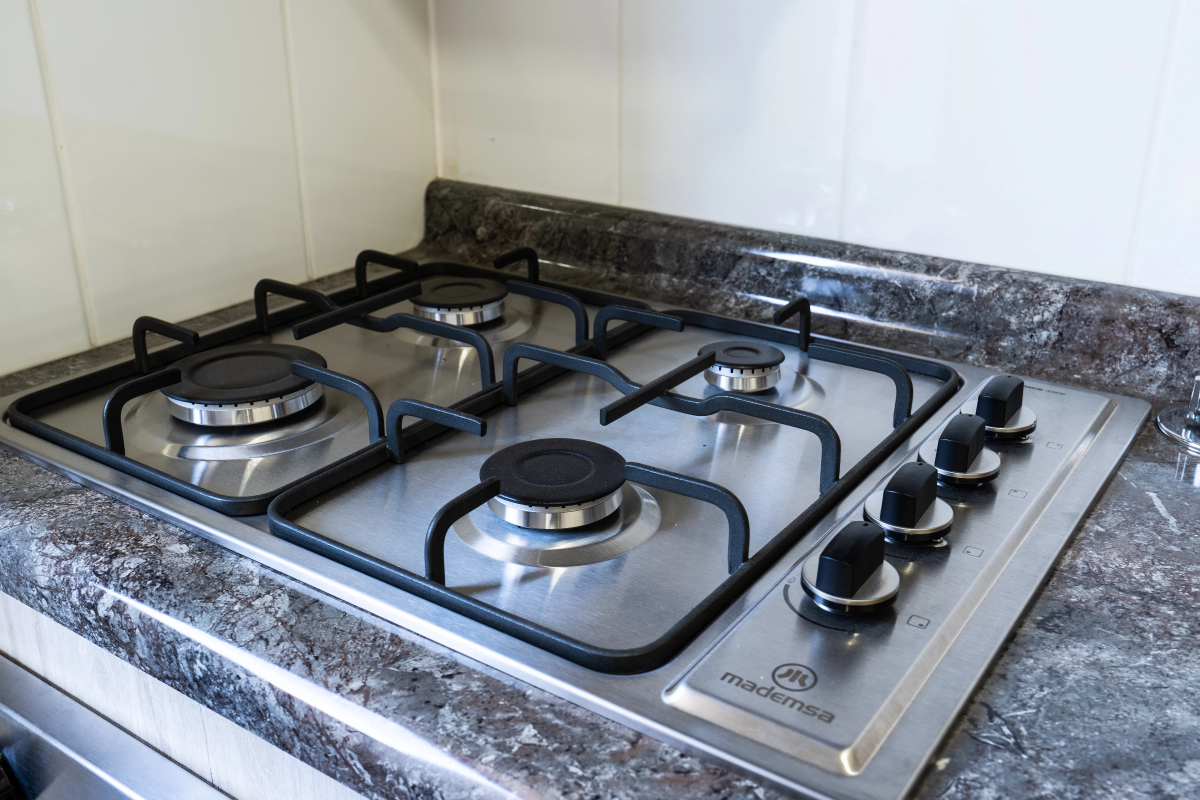 Cocina, living comedor, alfombra tipo bouclé en dormitorios, citofonía.